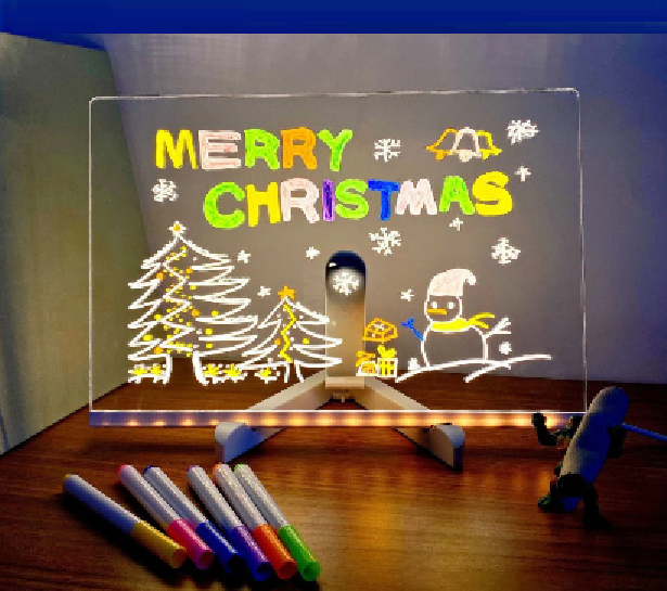 Simplemente escribe tus mensajes y diseños. Conéctalo por USB para obtener el efecto de luz o úsalo sin iluminación. Instálalo fácilmente con el soporte incluido y, al terminar, límpialo con un paño para seguir dando rienda suelta a tu creatividad.