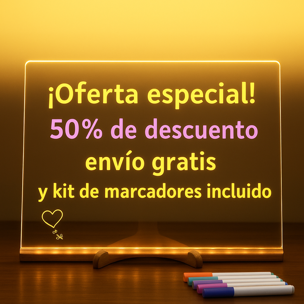 Diseñada para inspirar el desarrollo artístico, esta innovadora pizarra blanca incluye 7 rotuladores de colores vibrantes para dar vida a tus ideas. Ya sea para dibujar, planear o escribir mensajes emotivos, hará que cada sesión de dibujo sea aún más emocionante.